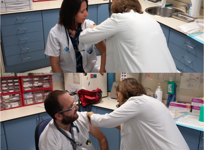 Els dies 24 i 25 d'Octubre s'està portant a terme la Campanya de Vacunació Antigripal a l'Hospital Universitari de la Vall d'Hebron. La Dra. Martin i el Dr. Soler, membres de la UPIIP, s'han vacunat aquest matí, donant ple suport a la vacunació del personal sanitari.